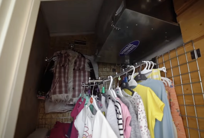 В шкафу, где хранятся вещи Арины, спрятан блок управления приточной вентиляцией, которой пользуются в детской, спальне и чулане. | Фото: youtube.com/ INMYROOM TV.