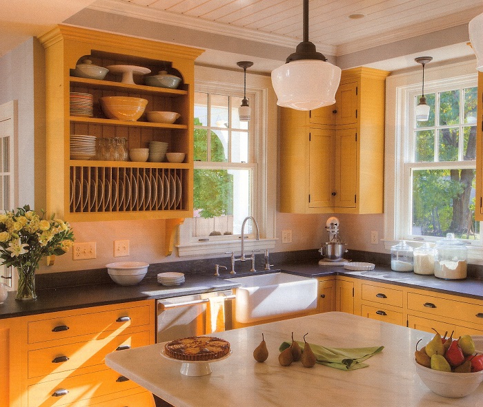 Так как большинство кухонь в современных квартирах не отличаются серьезными габаритами, хозяйки предпочитают хранить мелкую бытовую технику на столешнице. Однако дно таких приборов, как тостеры, пароварки, мультиварки во время работы могут сильно нагреваться, в результате чего страдает столешница. Постоянные перепады температур могут привести к изменению цвета и появлению микротрещин на поверхности. Поэтому либо разместите мелкую бытовую технику на специальных полках, либо подкладывайте под нее деревянные разделочные доски или специальные подставки под горячее. Также следует позаботиться о тяжелых предметах, размещенных на столешнице, например, каменной ступке. Чтобы они не царапали поверхность, приклейте ко дну несколько фетровых прокладок, которые используются для мебельных ножек. Так вам будет проще передвигать тяжелые кухонные аксессуары и посуду по столешнице.