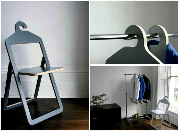 Складные стулья-вешалки. | Фото: Factsinter. По мнению Novate.ru, несколько таких складных стульев-вешалок помогут решить вопросы с посадочными местами и хранением вещей в шкафу.
