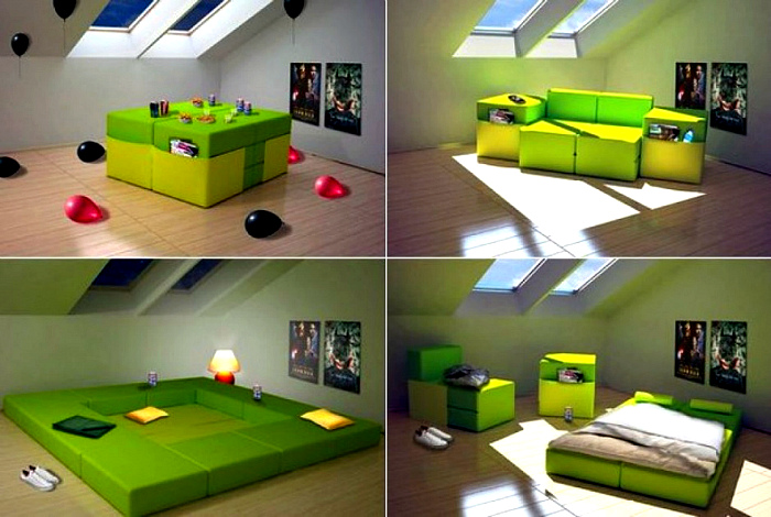 Мебель-трансформер для малогабаритки. Габариты большинства наших соотечественников откровенно не радуют. Ограниченные квадратные метры вынуждают выбирать только самое необходимое из мебели. Однако, жизнь не стоит на месте, и дизайнеры разрабатывают мебель-трансфомер. Один одна вещь может содержать в себе широкий функционал.