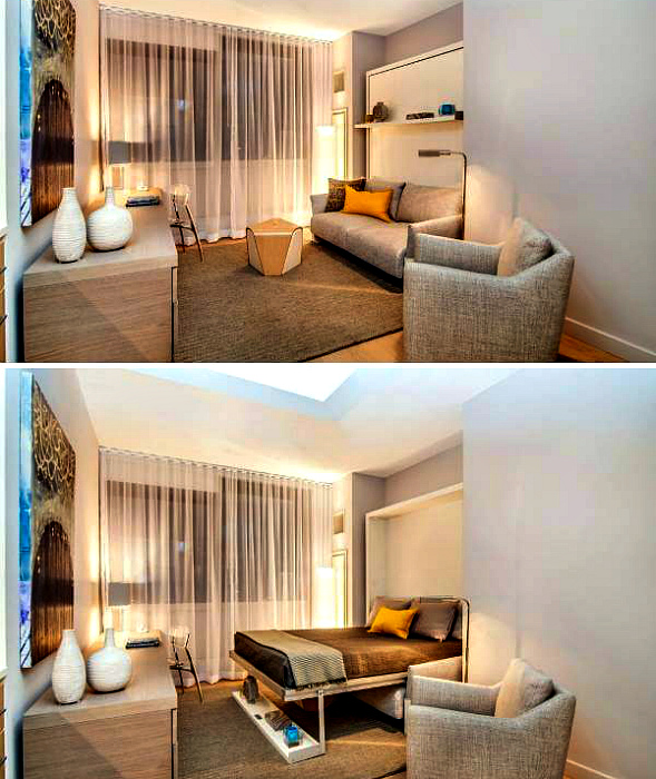 Кровать 2 в 1. | Фото: kvartira.mirtesen.ru. Кровать, которая легко трансформируется в диван, позволяя полностью поменять интерьер и общее назначение пространства. Только представьте себе, за одну минуту спальня превращается в гостиную, готовую для приема гостей.