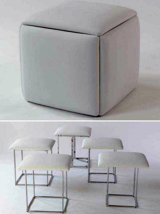 Разборной пуф. | Фото: Ремонт квартир под ключ. Если в вашей квартире катастрофически не хватает посадочных мест, а хранить стулья и кресла просто негде, вам стоит обратить внимание на этот лаконичный квадратный пуф, который за две минуты превращается в 5 невысоких табуретов.