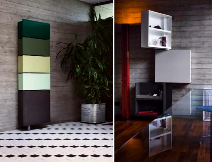 Стеллаж с поворотными полками. | Фото: Моят дом. В отличии от предыдущих предметов мебели, этот стеллаж не экономит пространство, зато может сделать его интереснее. Происходит это благодаря поворотным секциям, которые позволяют делать его, то открытым, то закрытым или комбинировать несколько положений.