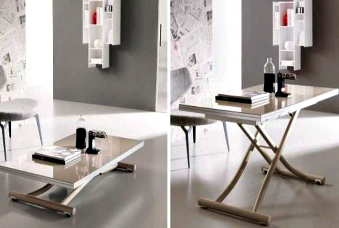 Подъемный столик-трансформер. | Фото: Odomah.org. Стильный столик с подъемным механизмом и раздвижной столешницей, что позволяет ему легко трансформироваться из маленького журнального в полноценный обеденный стол.
