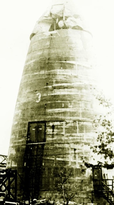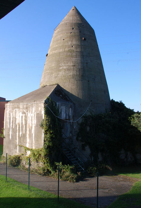 Только одна башня «Winkelturme» пострадала от прямого попадания снаряда, остальные выстояли (архивный снимок поврежденного сооружения). | Фото: luftschutzbunker-wilhelmshaven.de.
