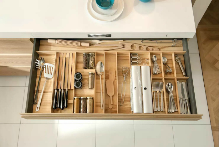 Порядок, который только снаружи. | Фото: Pinterest. Еще одной ошибкой является поверхностный порядок. Речь идет о том, что вы убираете вещи со столов и рабочих поверхностей, хаотично складывая все в шкафы. Такое поведение в корне неверно. Да, на поверхности чисто, но внутри шкафов полный хаос. Чтобы было легче поддерживать порядок, делите выдвижные шкафчики на секции и сортируйте то, что храните в них.