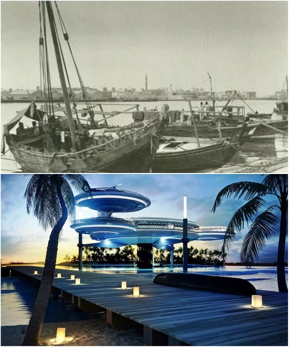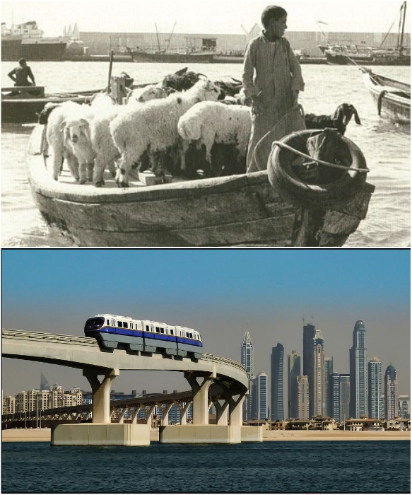 Плавсредства и городской пейзаж Дубаи 1960 и 2018 гг.| Фото: kartam47.livejournal.com/ shopudachi.ru.