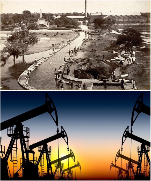Месторождение нефти в Дубаи (фото 1966 и 2018 гг.). | Фото: bigpicture.ru/ petroturk.com.