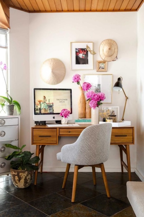 Дизайнеры делают акцент на том, что на рабочем столе не должно быть лишних вещей, которые заставляют вас отвлекаться. Однако не стоит воспринимать это правило слишком буквально и размещать на поверхности лишь компьютер, блокнот и ручку. Добавьте туда несколько приятных мелочей, которые будут мотивировать вас и вдохновлять на новые свершения: награда за какое-либо достижение в вашей сфере деятельности, фотография семьи, любимая книга, снимок того места, куда вы планируете отправиться отдыхать летом. Также можно разместить на столе мотивационный постер и яркую канцелярию, которая будет поднимать настроение в пасмурные дни.