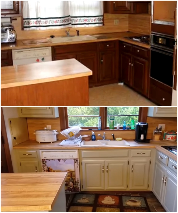 На обновление кухни понадобилось всего лишь 65 дол. | Фото: youtube.com/ Lisa Capen Quilts.