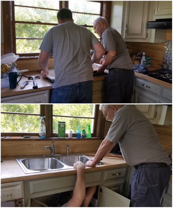 Если планируете поменять мойку, то это нужно сделать до покраски. | Фото: youtube.com/ Lisa Capen Quilts.