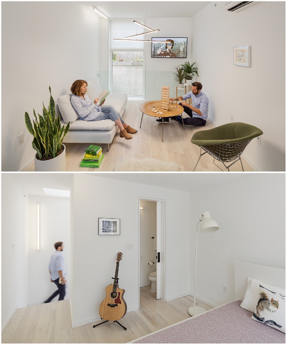 В мини-небоскребе на 5 уровнях обустроили комфортные жилые зоны с кухней и столовой в придачу (Tiny Tower Interface, Филадельфия). | Фото: archiscene.net.