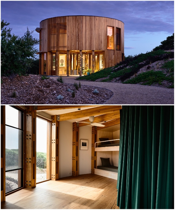Австралийское архбюро Austin Maynard Architects в большинстве случаев специализируется на установке энергоэффективных разработок в существующих домах, но все же решилось на разработку проекта круглого пляжного домика St Andrews. Привлекательный жилой объект, не имеющий углов и прямых линий, отличается не только оригинальным дизайном, но и тем, что создан по всем правилам «зеленой» архитектуры.