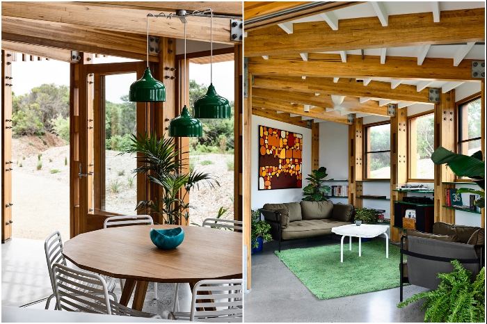 Натуральные отделочные материалы, открытая планировка интерьера, комфорт и наличие огромных окон превратили этот пляжный домик в прекрасное место для загородного отдыха. А наличие солнечных батарей, системы сбора и очистки дождевой воды и оборудования для утилизации отходов жизнедеятельности позволяет ему быть полностью энергонезависимым и устанавливаться на самых отдаленных участках побережья, причем без ущерба для окружающей среды. Интересный факт от Novate.Ru: Архбюро Austin Maynard Architects за пляжный домик St Andrews получило награду Architizer A+ за лучший эко-проект 2019 г., в котором принимали участие архбюро более чем из 100 стран мира.