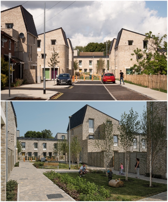 Дома на Goldsmith Street расположены так, чтобы и автомобили могли беспрепятственно двигаться, а детям можно было играть в безопасности. | Фото: azuremagazine.com/ bath.ac.uk. Их проект заслуживает похвал не только потому, что это благое дело, но оттого что они смогли сделать дома довольно привлекательными, комфортными, энергоэффективными и вдобавок ко всему, прекрасно гармонирующими с традиционной архитектурой в прилегающих районах. Жилой квартал на на Goldsmith Street занял высокое место в рейтинге самых экологичных зданий по версии Passivhaus, также этот проект получил Премию Стирлинга, которая является самой престижной архитектурной наградой от Королевского института британских архитекторов (RIBA).