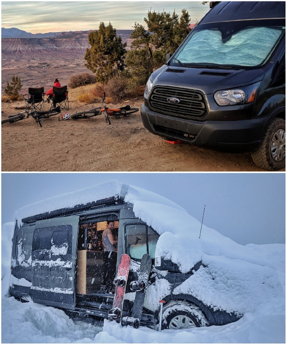 Некоторые современные люди настолько устали от городской суеты, что готовы оставить устроенную жизнь и полностью отрешиться от цивилизации. На такой кардинальный шаг решилась канадская семейная пара, которая продала дом и все имущество, переоборудовала автофургон и вот уже 3 года путешествует по всей Америке и ни о чем не жалеет. Супруги Изабель и Антуан отказались от дома и работы в обмен на жизнь, наполненную приключениями и свободы передвижения. | Фото: boredpanda.com. Изабель и Антуан – канадская семейная пара в один прекрасный день решила полностью отказаться от привычного для многих из нас существования (дом-работа, работа-дом) и кардинально поменяли свою жизнь. Чтобы мечта сбылась, пришлось продать дом, купить автомобиль и заняться его переоборудованием. | Фото: faroutride.com. А началось все с того, что супружеская пара, привыкшая к активному образу жизни, начала замечать, что ежедневная рутина превращает их существование в безрадостные будни. На путешествия, к которым они привыкли еще с юности, остается все меньше и меньше времени, ведь они постоянно заняты работой. Такая жизнь им изрядно надоела, и они решились все изменить. Как рассказывают сами супруги: «В 36 лет мы оставили нашу инженерную карьеру, продали наш дом и все что в нем, превратили автофургон в дом на колесах и отправились в путешествие по всей Америке. С тех пор прошло 3 года и все это время мы в пути и ни о чем не жалеем». Благодаря инженерному образованию удалось составить проект переоборудования автомобиля Ford Transit без чьей либо помощи. | Фото: bigpicture.ru/ instagram.com faroutride. Но чтобы столь заманчивая мечта сбылась, пришлось немало потрудиться. Для начала супруги приобрели автофургон, который надо было трансформировать в более или менее комфортный дом, ведь они планировали не просто путешествовать, кататься на горных велосипедах или сноубордах, но и постоянно в нем проживать. Тот факт, что молодые люди имели инженерное образование, неплохо помог в проектировании и в приобретении нужного оборудования. Все преобразования Антуан делал вместе с супругой. | Фото: instagram.com/ faroutride. Однако, для того чтобы своими руками проводить коммуникации, делать мебель и всякие выдвижные приспособления для хранения вещей, продуктов и спортивного инвентаря, им пришлось многому научиться. Причем процесс обучения проходил прямо на «стройплощадке» (в боксе или прямо на улице), где они экспериментировали во время переоборудования автофургона Ford Transit. Изабель активно помогала супругу в переоборудовании автофургона. | Фото: instagram.com/ faroutride. Для начала они сняли имеющуюся обшивку и сделали основательное утепление, ведь путешествовать планировали круглый год и в разных климатических зонах, поэтому пренебрегать тепло- и шумоизоляцией нельзя. Для организации комфортной жизни при отделке внутреннего пространства использовали тепо- и шумоизоляцию. | Фото: instagram.com/ faroutride. Чтобы жизнь в крошечном пространстве была не только уютной, но и безопасной для отделки было выбрано натуральное дерево, впрочем, и для создания мебели тоже. Имея крошечное пространство внутри фургона, супругам пришлось до миллиметра рассчитывать площадь, чтобы создать комфортные условия проживания. Спальное место обустроили на втором уровне автомобиля Ford Transit. | Фото: boredpanda.com. Под платформой с кроватью устроили кладовку, гардеробную и склад 