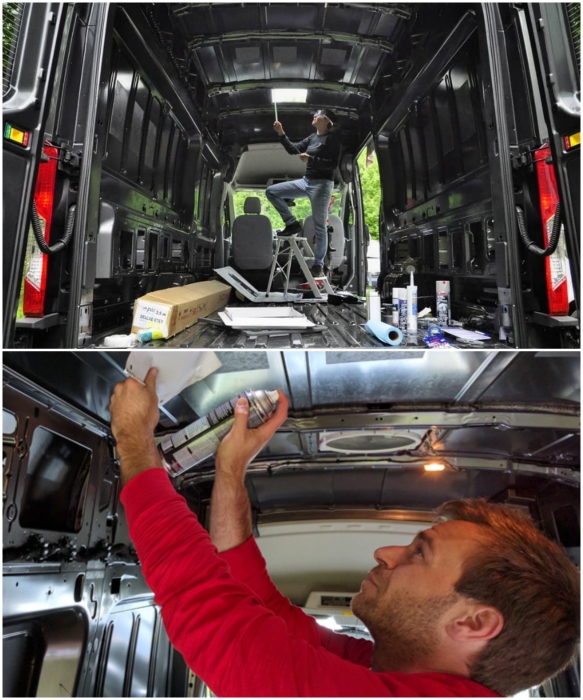 Для начала они сняли имеющуюся обшивку и сделали основательное утепление, ведь путешествовать планировали круглый год и в разных климатических зонах, поэтому пренебрегать тепло- и шумоизоляцией нельзя.