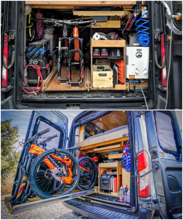 Под платформой с кроватью устроили кладовку, гардеробную и склад для хранения. | Фото: instagram.com/ faroutride.