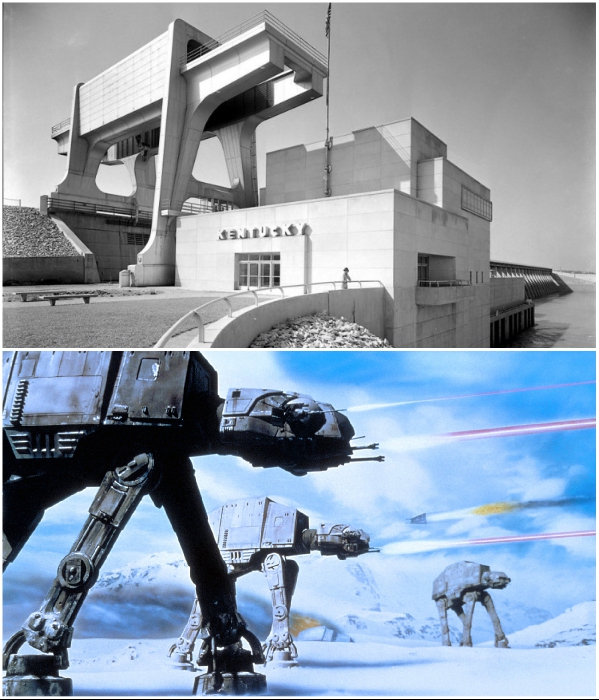 Дамбе Кентукки на реке Теннесси не хватает только бластера, чтобы быть на все 100% похожей на имперский шагоход AT-AT. | Фото: interestingengineering.com/ gallery.world.