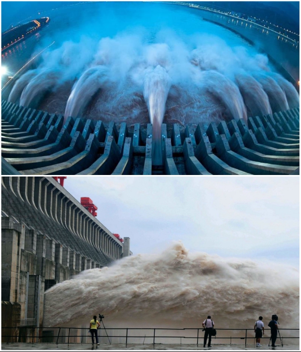 Мощное инженерное сооружение гидроэлектростанции «Три ущелья» («Санься»), созданное на реке Янцзы вызывало не только бурю протестов по поводу ее вреда экологии, но и ассоциируется с глобальной катастрофой. Особенно ужасает поток ревущей воды в тот период, когда открывают шлюзы, чтобы предотвратить наводнение.