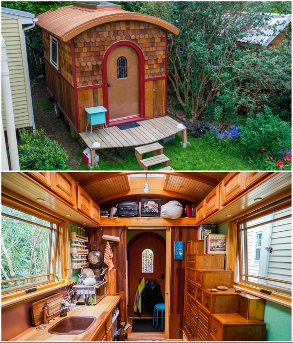 Крошечный дом – это не просто жилье, это философия бытия (эко-дом на колесах супругов Зурбаганских, Россия). | Фото: mosregtoday.ru.