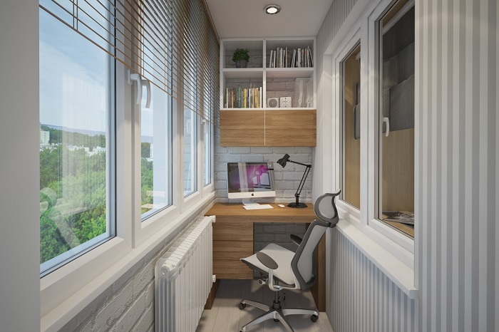 На балконе можно сделать мини-кабинет. / Фото: dizainkyhni.com