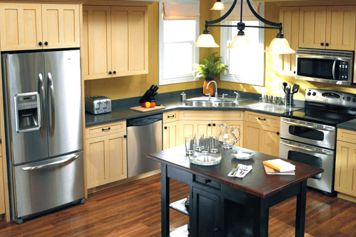 Теперь определяемся, на что можно потратить чуть меньше денег, чем говорят продавцы в магазинах. Например, встроенный холодильник будет стоить гораздо дороже, чем отдельно стоящий. В случае с первым вам придется заплатить кругленькую сумму не только за сам агрегат, но также за шкаф, в который его нужно будет встроить. Потратить чуть меньше денег можно также на технику 2 в 1. Одна духовка с функцией СВЧ будет стоить дешевле, чем две встроенных. Для маленьких кухонь станут актуальными и необычные сочетания, например, духовка, совмещенная с посудомоечной машиной. Цена такого универсального прибора будет лояльной, да и места он займет гораздо меньше, чем два отдельно стоящих устройства.