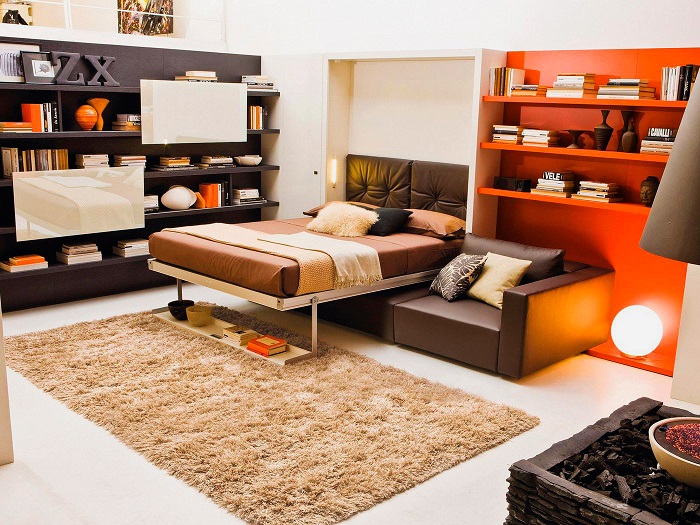 • Компактная и многофункциональная мебель – ваш лучший союзник в борьбе за комфортную и удобную квартиру. Именно поэтому отдавайте предпочтение столам-трансформерам, диванам со встроенным баром, двухэтажным кроватям и прочей мебели, которая выполняет роль нескольких предметов интерьера.
