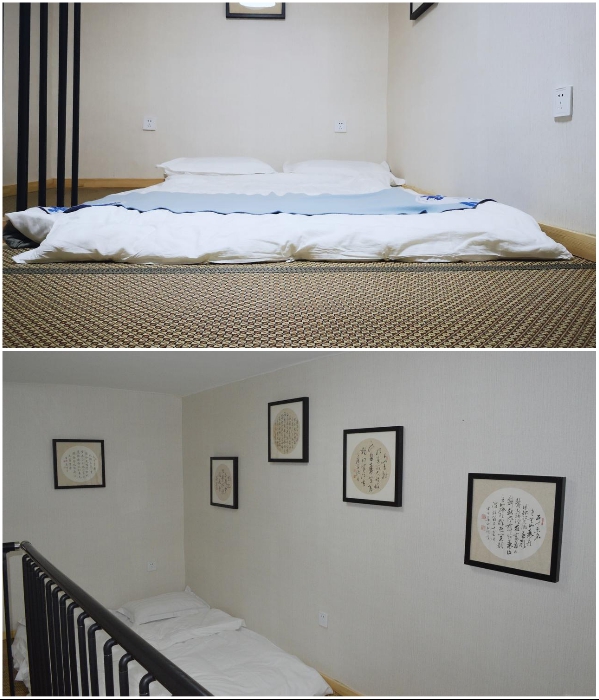 В отеле есть номера, в которых вместо кровати разложен двуспальный матрас на полу («Liuyue Capsule Hotel», Китай). | Фото: liuyue-capsule.tianjintophotels.com.