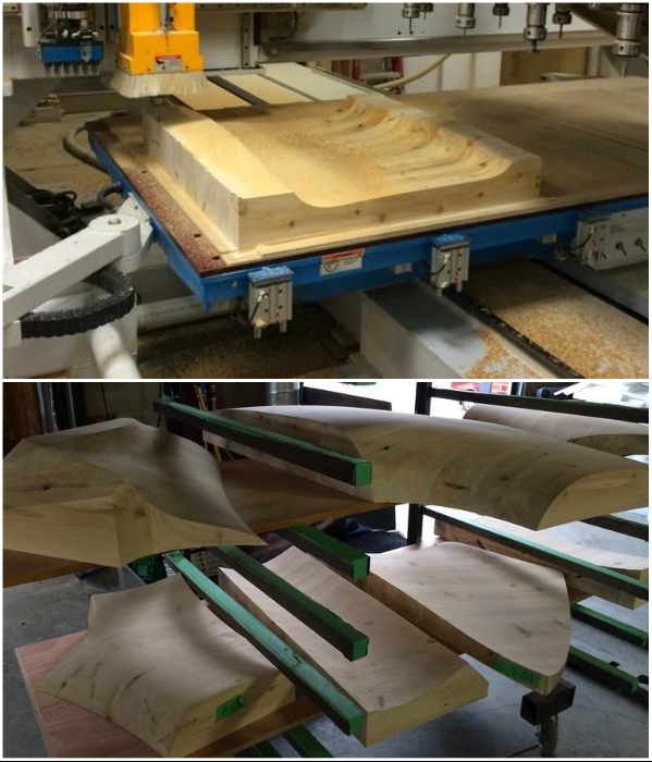 Чтобы добиться такого эффекта дизайн внутреннего пространства пришлось разрабатывать с помощью конструкторских программ и 3D-технологий, ведь ее обтекаемые элементы вырезаны из цельного кедра и сделаны в форме настоящего грота или пещеры. Единственное, что кардинально отличает эти объекты – натуральное теплое дерево вместо холодных камней.