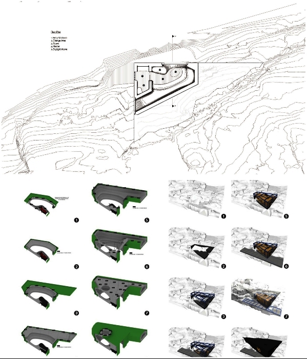 Схема размещения сауны на скалистом берегу («Grotto», Канада). / Фото: theawesomedaily.com.