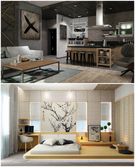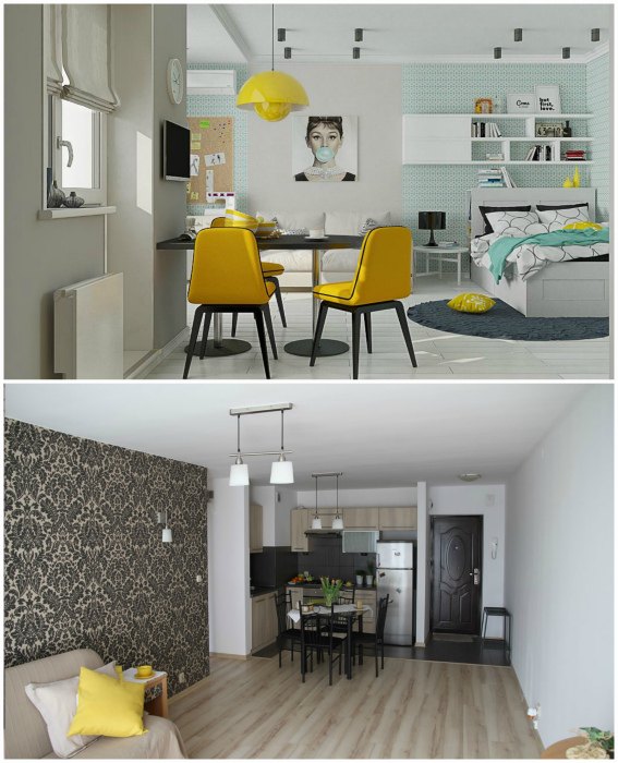 Концептуальный интерьер. | Фото: Homify, setyouroom.com. Чаще всего владельцами квартир-студий становятся молодые пары без детей, холостяки или бизнес-леди. Все эти категории могут позволить себе проявить креативность и сделать свое жилье стильным и концептуальным. Для этого определите, какой из современных стилей нравится вам больше всего и придерживайтесь его основных характеристик. Любите брутальность и драматизм - обратите внимание на интерьеры в стиле лофт или индастриал. Любите свет и легкость - тогда вам придется по душе минимализм, прованс, контемпорари или европейский.
