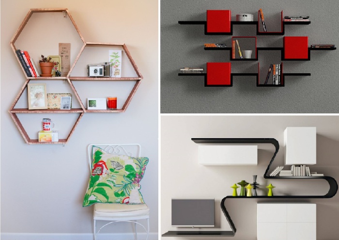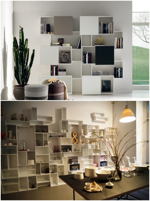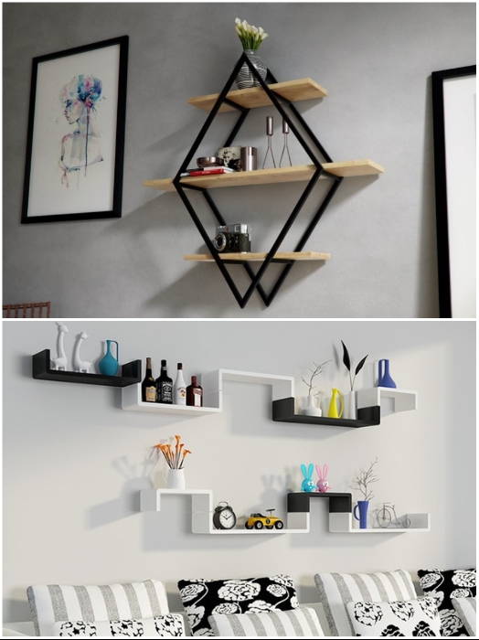 Необычные формы открытых полок сами по себе могут стать украшением комнаты. | Фото: kvartira.mirtesen.ru.