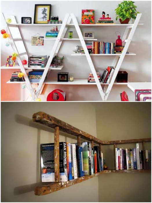 Любые лестницы станут прекрасной основой для создания открытых полок. | Фото: cleaning63.ru/ pro-remont.org.