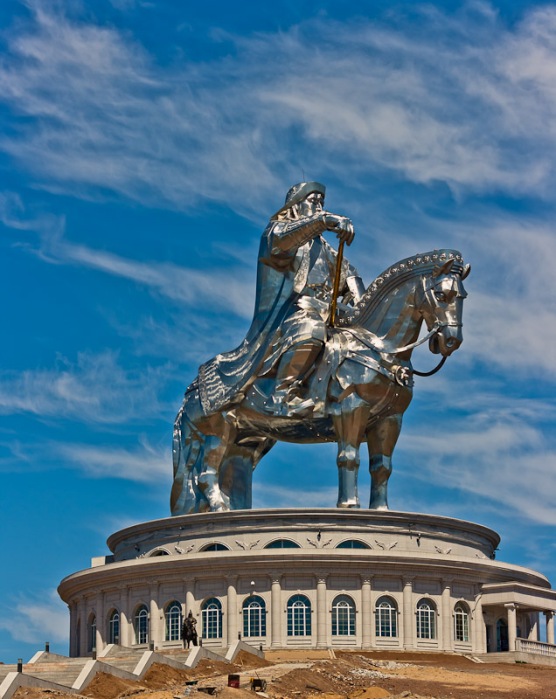Самый большой памятник великому полководцу. /Фото: bigpicture.ru Этот монгольский полководец, построивший огромную империю, известен на весь мир, а на своей родине особо почитаем. Соответственно, и памятников у него найдется немало. Однако особенно выделяется из всех тот, который расположен в пятидесяти километрах от столицы Монголии. Скульптура представляет собой огромный монумент на десятиметровом постаменте, высотой около сорока метров и изображает великого полководца сидящим на лошади. Статуя обшита металлом, а ее вес составляет 250 тысяч тонн.