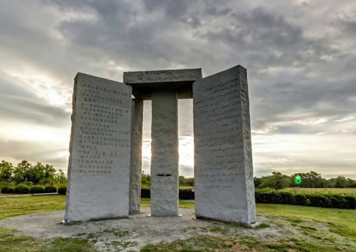 Интерес подогревает также ряд других загадок, связанных с монументом. Во-первых, неизвестен собственник скульптуры, и это притом, что есть информация о приобретении участка земли, на котором она стоит. Во-вторых, те, кто задумал скрижали, расположили их особым образом - в соответствии с годичным циклом перемещения Солнца по небу. Более того, из надписи известно, что одновременно с установкой монумента была заложена временная капсула, однако ни о месте ее расположения, ни о ее содержимом информации нет.