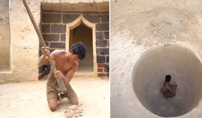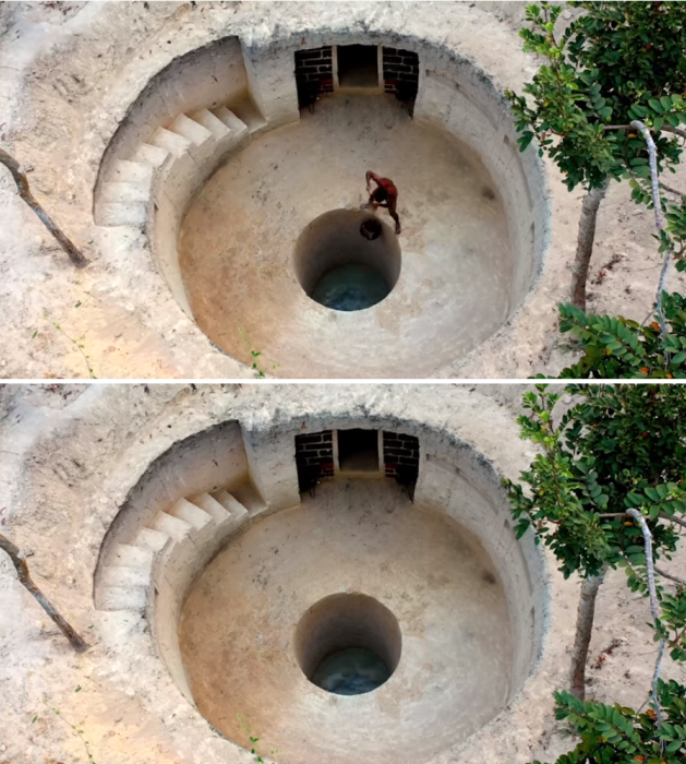 Чтобы сделать жизнь более комфортной, владелец круглого земляного дома решил выкопать еще и колодец. Используя древние орудия труда, он воспроизвел тот процесс, который был вполне обычным при создании подобного рода объектов. На копание скважины глубиной 10,2 м ушло всего лишь 10 дней. А привязанный глиняный сосуд стал той емкостью, с помощью которой владелец оригинального жилья может доставать воду.