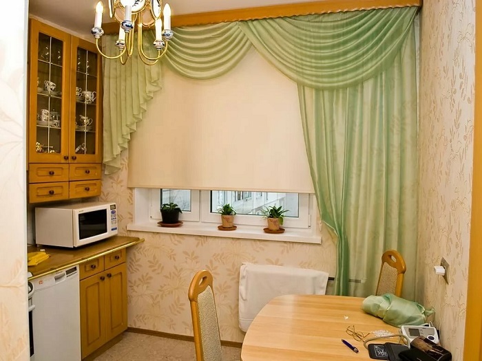 На кухне неуместны такие занавески. / Фото: dizainkyhni.com