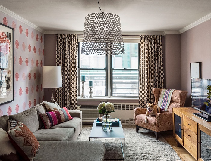 Если обои с рисунком, нельзя подбирать и шторы с принтом. / Фото: Yellowhome.ru