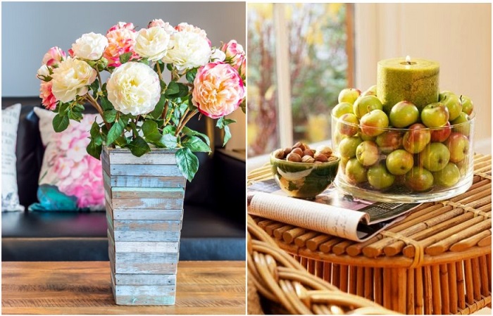Искусственные цветы и фрукты не подходят для оформления интерьера