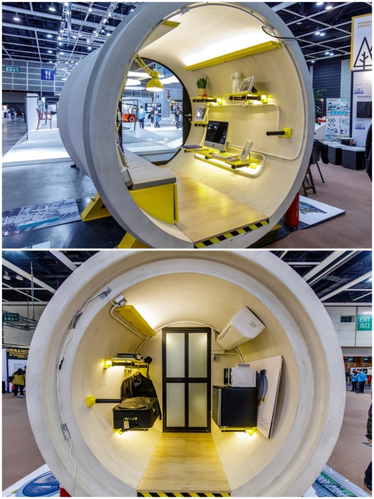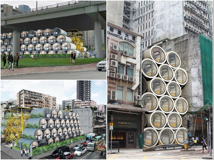 Чтобы помочь гонконгцам, которые не могут приобрести мало-мальски пригодное для жизни жилье, местный архитектор разработал уникальные микроквартиры в гигантских железобетонных трубах. На фоне того, что некоторые горожане живут в клетках или комнатах-«гробах», такое решение проблемы выглядит более чем привлекательно, ведь новоиспеченное жилье будет полностью благоустроенным и довольно комфортным.