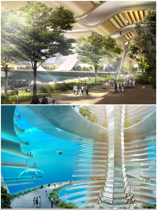 В некоторых секциях организуют стадионы, концертные залы и гостинично-развлекательные центры (концепт «Eco Atlantis»). | Фото: vnews.agency.