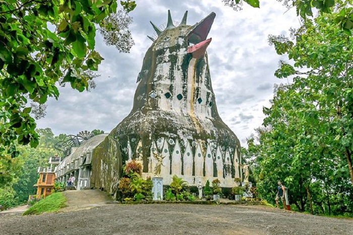 Не менее странное сооружение можно найти на острове Ява. Как оказалось, этот непонятный объект построил Даниэль Аламсжах, который замыслил увековечить свое имя благодаря созданной им церкви. Сложно поверить, но это действительно молитвенный дом, в котором заодно размещается реабилитационный центр для людей с наркозависимостью. Многие по этому поводу шутят, что сам автор по меньшей мере странного произведения, наверное, что-то не то курил, воображая себя скульптором и архитектором, ведь по задумке – это голубь, олицетворяющий мир. Естественно местный народ благородную птицу не узнал, для них (и не только) очертания церкви больше похожи на курицу. Вот отсюда и появилось народное прозвище – «куриная церковь».