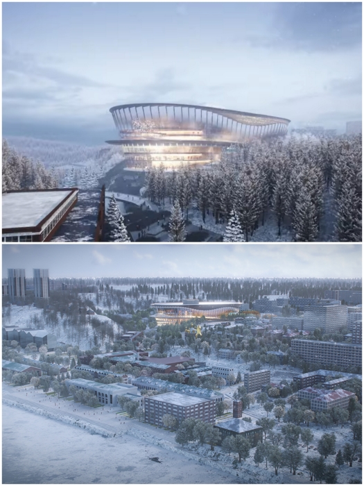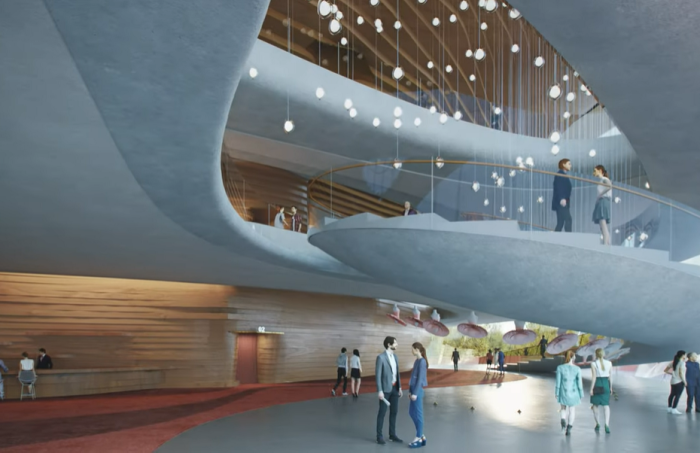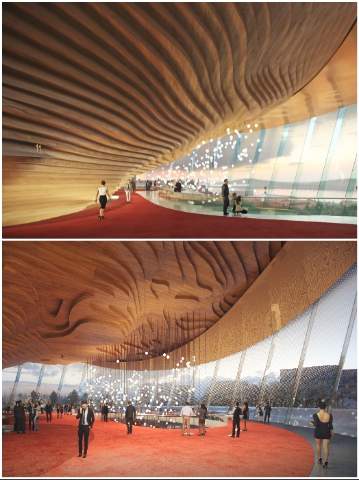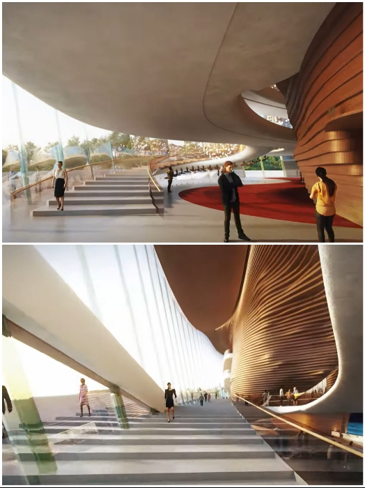 Волнообразная крыша, плавные обтекаемые формы самого здания напоминают движения танцоров (концепт «wHY Architecture»). | Фото: designboom.com.