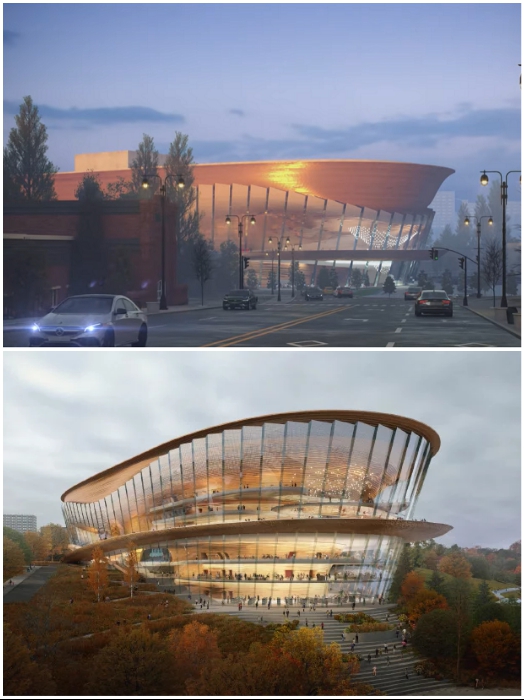 Как утверждают сами авторы идеи, в своем проекте они не только учли все пожелания, но и старались передать некую особенность этого здания благодаря плавным линиям, «передающим движения, которые видят зрители во время танца».