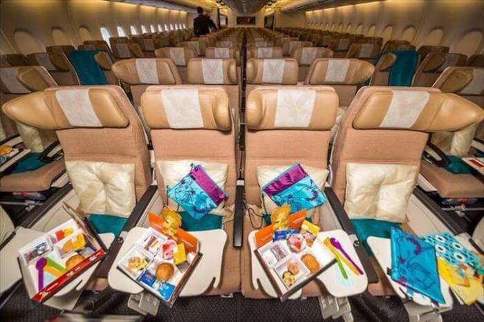 Для путешествующих эконом-классом конечно же никаких роскошных бонусов нет и комфорт совсем другой, но стоимость билетов намного ниже. Хотя салон тоже довольно прилично выглядит и кресла удобные, также и без бонусов не обошлось. Для самых маленьких пассажиров предусмотрены развлекательные наборы.