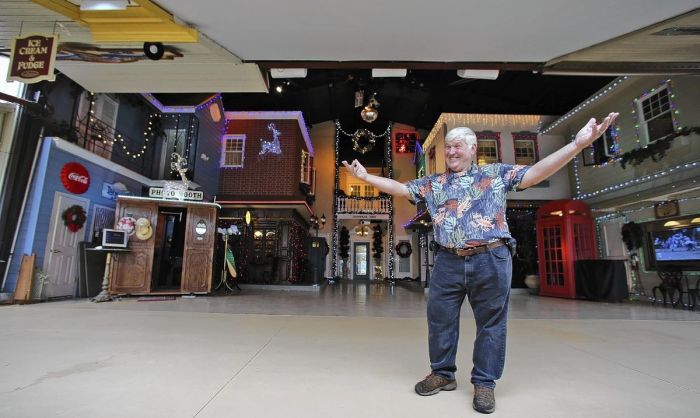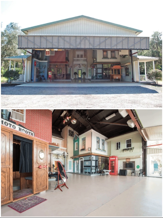 Настоящая площадь с фонарями, телефонной будкой и ратушей находятся внутри ангара («Danville», США). | Фото: danvillebnb.com.