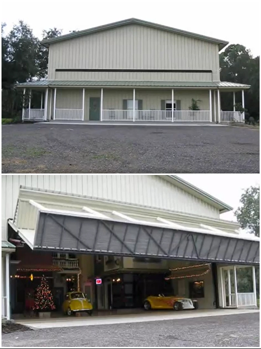 Необычный дом появился на просторах штата Флориды в округе Семинол (США) после того, как один оригинал, которого зовут Дэн Шоу (Dan Shaw), решил построить авиационный ангар для своего легкого самолета. Неугомонный пилот планировал, что огромный ангар станет заодно и гостевым домом для его друзей-летчиков на его лесистом участке земли площадью 10 га и местом для самолета.