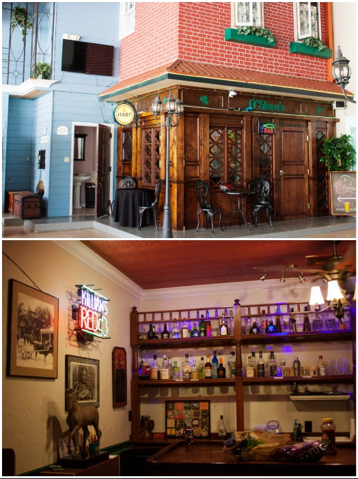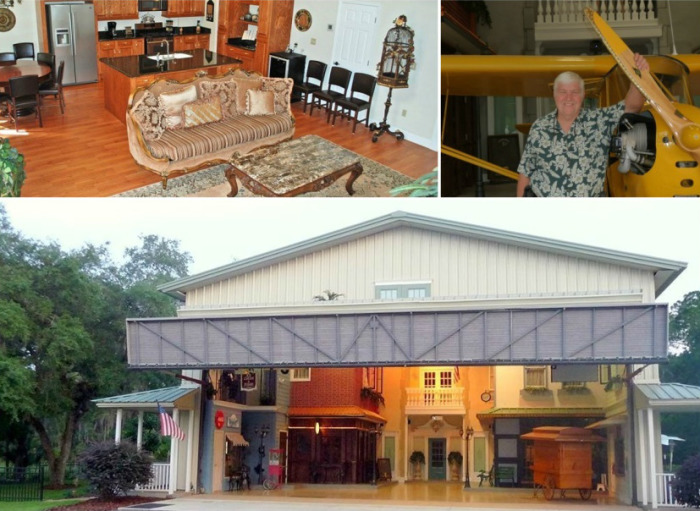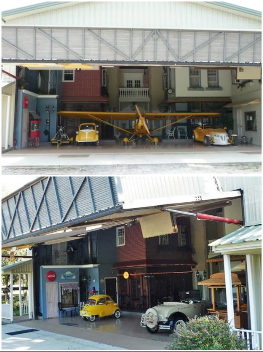 Ничем неприметный дом, некогда служивший ангаром для самолетов, поднял немалую шумиху в Сети после того, как пользователи узнали его стоимость. Это скромное снаружи строение, в котором обустроена всего лишь одна жилая комната, оценено 1 млн. дол., но удивление от услышанного пропадает стразу же после нажатия всего лишь одной кнопки. 66-летний Dan Shaw представляет свое детище – мини-город «Дэнвилл» (Флорида, США). | Фото: orlandosentinel.com. Необычный дом появился на просторах штата Флориды в округе Семинол (США) после того, как один оригинал, которого зовут Дэн Шоу (Dan Shaw), решил построить авиационный ангар для своего легкого самолета. Неугомонный пилот планировал, что огромный ангар станет заодно и гостевым домом для его друзей-летчиков на его лесистом участке земли площадью 10 га и местом для самолета. Обычный с виду дом за одно мгновение превращается в мини-город в американском стиле 40-х г. прошлого века. | Фото: bt-women.com.ua. Много лет креативный владелец создавал необычное убежище, превратив его в .настоящий мини-городок, повторяющий американский стиль градостроительства 40-х годов прошлого века. Площадь и улочки уникального города в авиационном ангаре стилизованы под жизнь американцев в 40-х годах («Danville», США). | Фото: airbnb.ru. Как признается мужчина, он потерял счет финансовым вложениям, создавая необычный мир внутри стандартного с виду дома, ведь оформление интерьера, где любой предмет мебели и быта, телефоны, пишущие машинки, вентиляторы и другие вещи середины 20-го века он собирал по крупицам и только оригинальные. В этом раритетном мире нет подделок, даже мелкие детали соответствуют тому времени. Несколько раритетных машин и настоящий самолет у входа в «Danville» могут увидеть его гости (Флорида, США). | Фото: attn2details.wordpress.com/ doorlandonorth.com. Все винтажные предметы он приобретал на интернет-площадках craigslist, eBay или разыскивал в сараях, гаражах, чердаках у своих друзей, знакомых, родственников и соседей. Внутри уникального дома-города разместилис настоящий .шестиместный самолет компании «Сессна» (Cessna), несколько раритетных автомобилей, ирландский паб, телефонная будка, уличные фонари, мэрия с одной комнатой, гостиница с необычным номером и даже ратуша. Настоящая площадь с фонарями, телефонной будкой и ратушей находятся внутри ангара («Danville», США). | Фото: danvillebnb.com. Все это скрывается за тем невзрачным фасадом, который люди видят, проходя по улице, но стоит зайти во двор, как менеджер с загадочной улыбкой предложит нажать всего лишь одну кнопку на пульте управления. Вот в этот момент перед взором посетителей поднимется большая часть переднего фасада – огромные гаражные ворота. После этого и можно будет свободно отправиться путешествовать по улочкам прошлого. Как правило, на прогулку решаются не сразу, потому что потрясения достаточно сильные и нужно некоторые время, чтобы гости пришли в себя. Дэн Шоу назначил себя мэром своего собственного города («Danville», США). | Фото: latfusa.com. Свой необычный дом-город предприимчивый хозяин назвал «Дэнвилл» (Danville), а себя провозгласил мэром, хотя жителей этой «административной» единице всего два – он и его супруга, которая и проголосовала за него на «выборах». Дэн таким образом шутит, когда дает интервью или сам представляет свое детище, ведь слава о столь необычном сооружении разнеслась чуть ли не по всей стране и многие устремля
