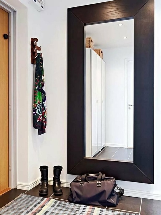 В каждой квартире должно присутствовать минимум два зеркала: одно в ванной комнате, а второе в прихожей. Если проигнорировать это правило, то придется ежедневно бегать в санузел, что посмотреть, правильно ли вы надели шапку или завязали шарф. Да и подмигнуть своему отражению перед выходом из дома обязательно нужно – этот простой ритуал дарит хорошее настроение и дает уверенность в завтрашнем дне. Также зеркало в прихожей выполняет еще одну важную функцию – визуально расширяет пространство. Этот нехитрый прием позволяет из крохотного помещения сделать достаточно просторную комнату. Пусть и лишь зрительно, но все же.